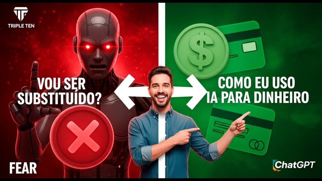 Olha, tem um pânico geral no ar, né? A ideia de que a inteligência artificial vai simplesmente acabar com um monte de profissões. Mas e se o foco tiver todo errado? A conversa que a gente precisa ter é outra. Como é que se usa a IA para, bom, para melhorar no trabalho e, claro, para ganhar mais dinheiro? Pois é, essa é a pergunta de 1 milhão de dólares, né? A inteligência artificial é uma ameaça pro nosso emprego? É o medo que tá na cabeça de muita gente e super compreensível aquele receio de que a nossa área, a nossa profissão tá com os dias contados. Mas será que essa é a única maneira de ver as coisas? E se a resposta para essa pergunta for o contrário? Olha só, essa frase é de uma pessoa que, depois de começar a usar a inteligência artificial viu a receita dela aumentar e muito. Ou seja, a Ia colocou literalmente mais dinheiro no bolso dela. Isso muda tudo, né? mostra que a IA pode ser uma baita aliada financeira e não só uma ameaça. Então vamos lá. Ameaça ou oportunidade, é hora de sair do pânico para chegar no lucro. Basicamente existem dois caminhos. De um lado, tem o pessoal do medo, né? Aquela ideia de que a IA vai substituir todo mundo, a profissão X acabou, mas do outro lado tem a oportunidade, a visão de que dá para usar e há para melhorar o trabalho, os estudos. e ganhar mais. E é nesse segundo caminho que a gente vai focar aqui. E para entender o tamanho dessa oportunidade, olha só essa comparação. O jeito antigo de trabalhar envolvia meses, meses de pesquisa super detalhada, manual, cansativa. O jeito novo, alguns comandantos bem detalhados numa ferramenta de a diferença na eficiência, na economia de tempo é é absurda. OK. Mas como é que a gente desbloqueia esse poder todo prática? O segredo não tá só na ferramenta, tá no jeito que a gente conversa com ela. A gente vai falar sobre como dominar a arte do prompt. É isso. O pulo do gato tá todo aí no prompt. É preciso saber dar o comando certo, porque no final das contas o que a IA entrega é um espelho do que a gente pede. Se o pedido for ruim, a resposta vai ser ruim. A gente precisa ser o guia da ferramenta. E olha que exemplo perfeito pra gente entender a diferença. Um prompt simples seria: escreve um roteiro sobre os 10 maiores buracos negros. OK? A I vai entregar alguma coisa genérica. Agora olha o prompt detalhado. Escreve um roteiro informal para um público jovem, usa analogias, bota umas pausas e ainda adiciona uma curiosidade sobre o que acontece se alguém cair lá dentro. Percebe? O resultado disso vai ser um conteúdo infinitamente mais rico, mais direcionado, quase pronto para usar. Então, resumindo, o que faz um prompt ser bom de verdade? Primeiro, complexidade e detalhes. Não pode ser raso. Segundo, tem que especificar o que se quer e também o que não se quer. Isso é super importante. Depois, definir o tom, é formal, informal, engraçado. E, por fim, pedir elementos específicos, como analogias, exemplos, curiosidades. Tudo isso enriquece o resultado. Beleza? Agora que a gente já entendeu a importância de um bom prompt, vamos ver como isso funciona na prática. num fluxo de trabalho real. Dá para usar a IA em várias etapas de um projeto. Pensa só, primeiro na análise de mercado. A IA pode ajudar a mapear tendências, a entender o que o público quer depois na organização. Sabe aquele monte de ideia solta? A IA ajuda a transformar isso numa estrutura lógica, num esqueleto de projeto. E, claro, na criação do conteúdo em si, gerando os textos, os roteiros detalhados que a gente precisa. E aqui tá um passo a passo super prático, por exemplo, para criar um vídeo. Passo um, criar aquele prompt super detalhado no chat GPT para gerar o roteiro. Passo dois, pegar esse roteiro e jogar numa IA de voz, como o Elevan Labs para criar uma narração profissional. E o passo três, usar esse áudio que a IA gerou para editar o vídeo num programa simples como CapC. Olha aí um fluxo de trabalho inteirinho otimizado pela IA. Mas e se a gente for além? E se em vez de só usar a IA como uma ferramenta, a gente transformar o domínio dela numa carreira? Sim, é totalmente possível. Vamos dar uma olhada nesse caminho. Para quem quer mergulhar de cabeça nisso, já existem caminhos mais estruturados. Um exemplo bem legal é a Triple T. É uma escola de tecnologia americana que oferece esses boot camps, sabe? Cursos super intensivos e práticos, pensados para deixar a pessoa pronta pro mercado de trabalho bem rápido. E funciona? Bom, os números falam por si. Olha isso, 87%, mais de 87% dos alunos que se formam na Triple 10 conseguem o primeiro emprego na área de tecnologia em até 6 meses. É um número impressionante que mostra o poder de um ensino que é focado no que o mercado realmente precisa. E esse gráfico aqui deixa isso bem claro, né? A média de tempo para conseguir um emprego depois de se formar é 6 meses. É um ritmo muito, muito rápido, especialmente se a gente comparar com os caminhos de educação mais tradicionais. E para não ficar só nos números, tem a história do Gustavo, que é um exemplo real. Ele começou o boot camp. No quinto mês de curso, ele já conseguiu emprego como trainer. E hoje, hoje ele trabalha de casa como analista de dados júnior. É uma transição de carreira que aconteceu de verdade e super rápido. E o mais legal de tudo é que o próprio curso usa IA para ensinar. Eles têm um tutor de inteligência artificial que se chama Dot, que fica disponível 24 horas por dia para ajudar os alunos com as dúvidas, com os problemas. É o ciclo perfeito, né? Usar a tecnologia para aprender a dominar a própria tecnologia. Bom, estamos chegando na reta final e a grande mensagem aqui é que é preciso ir além do básico. Não dá para ficar no superficial, é hora de agir. Então, o que fazer a partir de agora? Um plano de ação. Primeiro, parar de usar só prompt simples, básico. Segundo, dedicar um tempo 