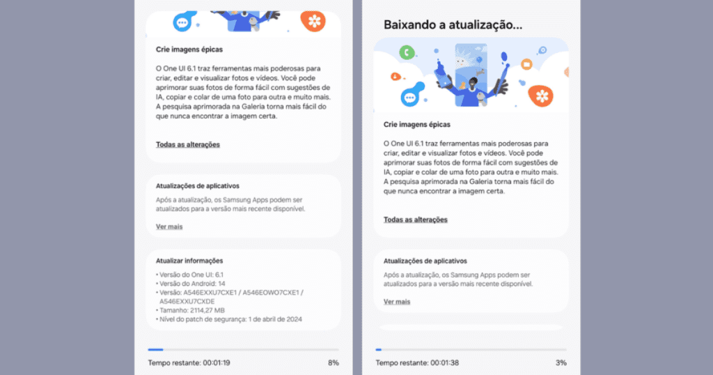 Atualização da One UI 6.1 no A54 (Imagem: Captura de tela/Bruno de Blasi/Canaltech)