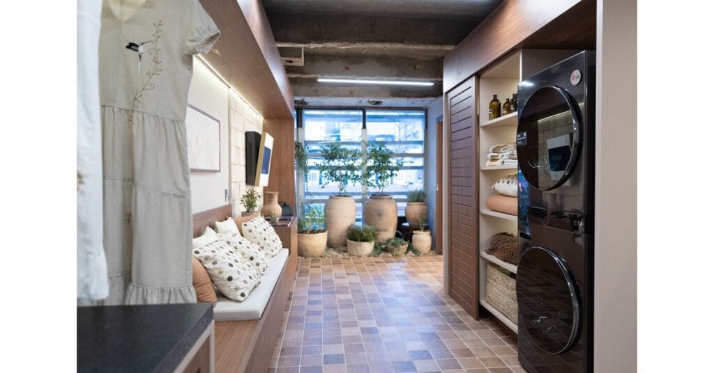 Para isso, a lavanderia incorpora as mais avançadas soluções tecnológicas da LG, pensadas para transformar a experiência dos consumidores. Dentre os destaques, estão o Closet Inteligente LG Styler e a Lavadora e Secadora Elétrica Smart LG WashTower 17kg, produtos que combinam inovação, funcionalidade e sustentabilidade.